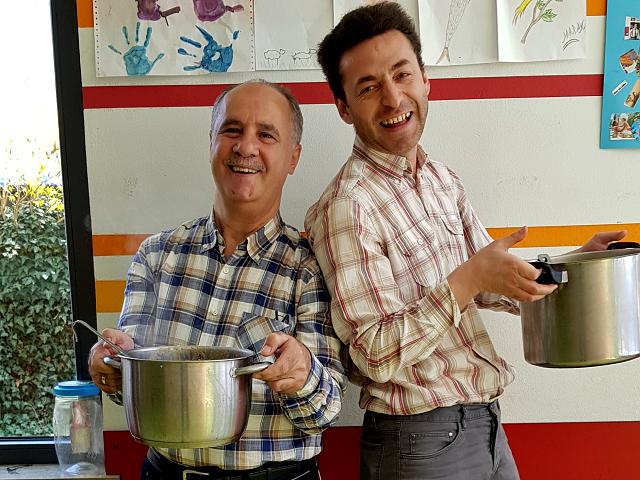 In der unteren Küche des Gemeinde-Zentrums hatten sich die türkischen Geflüchteten, die in der Anschluss-Unterbringung von Oberboihingen wohnen, eingefunden und kochten miteinander etliche Töpfe voll mit Linsensuppe.
