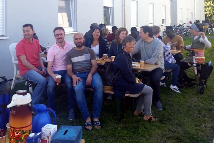 Gemeinsam mit den Geflüchteten, die in Oberboihingen eine Heimat gefunden haben verbrachten wir einen sehr unterhaltsamen Nachmittag in der Daimlerstraße. Abdulrahman wollte sich übrigens nicht gleich zu uns setzen – er hat die deutsche Gründlichkeit schon verinnerlicht und arbeitete einfach pflichtbewusst bis 15:00 Uhr in der Fahrradwerkstatt weiter. Dann erst holte er das „Geöffnet-Schild“ in den Container, schloss sorgfältig ab und setzte sich bescheidend lächelnd zur geselligen Runde.